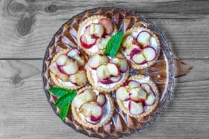 Bestrijk perziken, nectarines en abrikozen lichtjes met honing of sprenkel er suiker overheen.